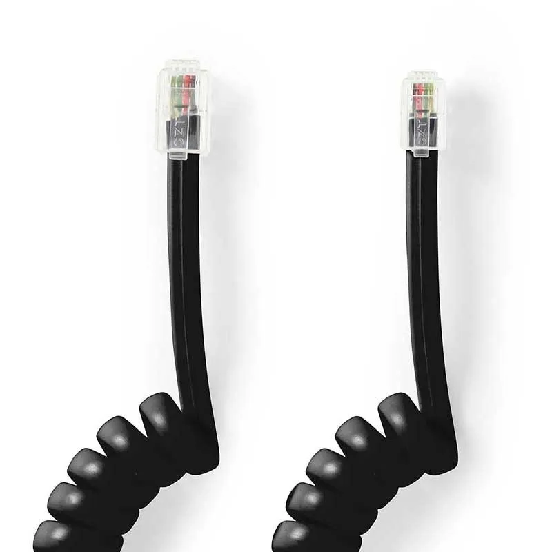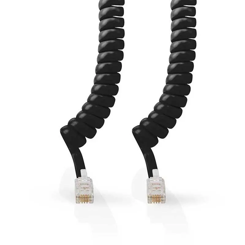 Cordón espiral negro para teléfonos con puertos RJ9/RJ9