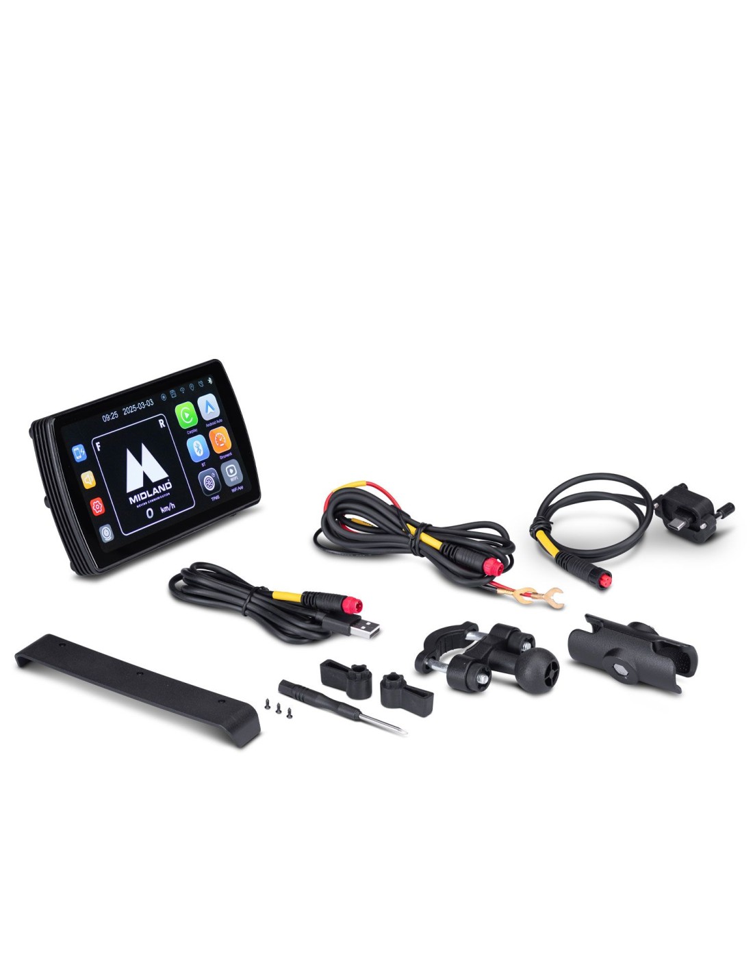 CarPlay para motos con duplicación de pantalla, pantalla táctil de 5,5″, comandos de voz y fijación de liberación rápida.